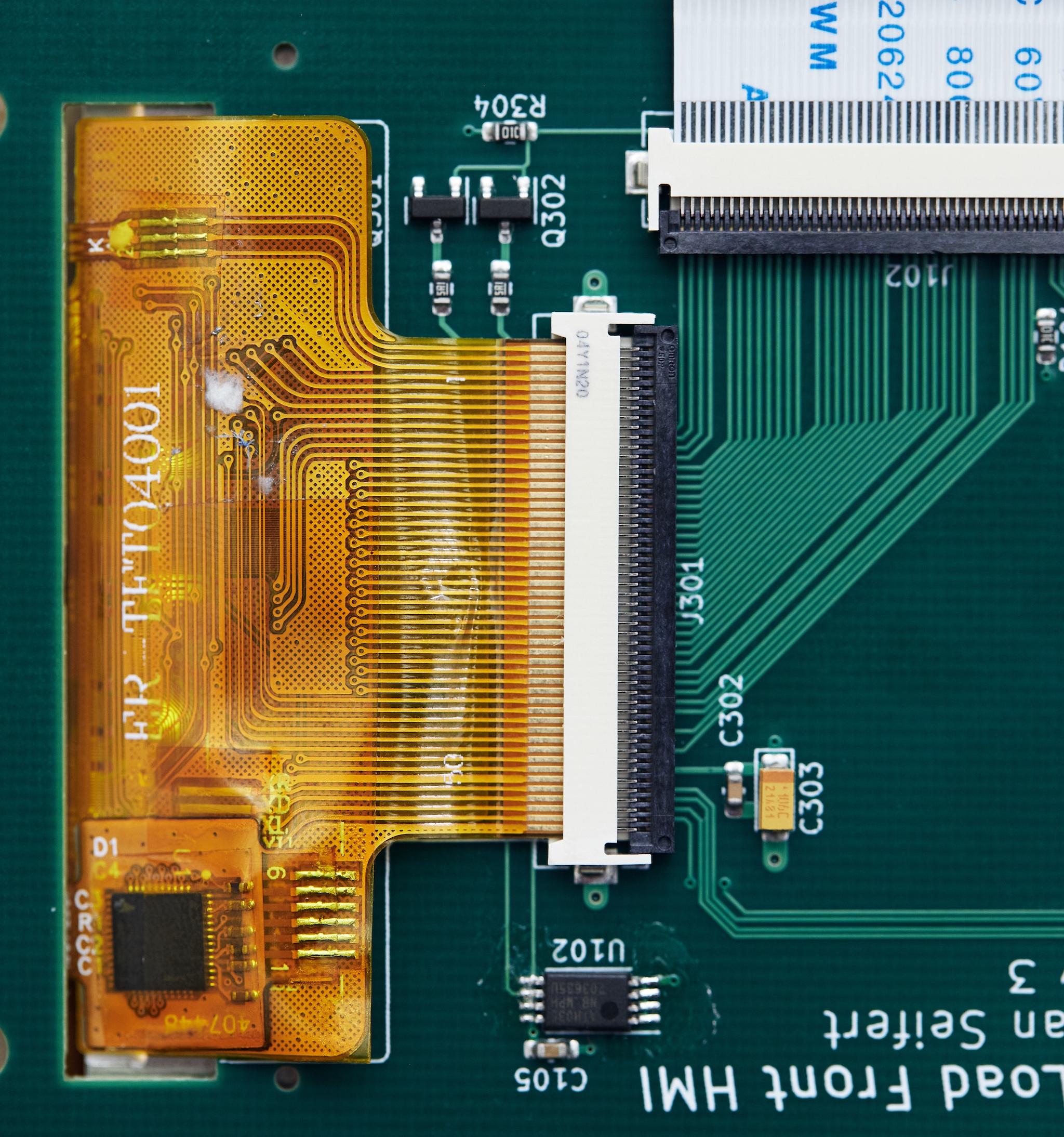 With the front panel, I wasn’t as lucky as with the controller board in terms of errors: I got the pinout of the FPC connector linking it to the main board reversed. It still works, but the FPC needs to be much longer (and have a 180° twist) to connect, which is far from ideal.